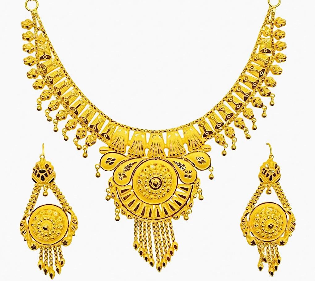 Exquisite Bridal Gold Full Set featuring elegant design and fine craftsmanship — a perfect blend of tradition and luxury for the bride’s special day.