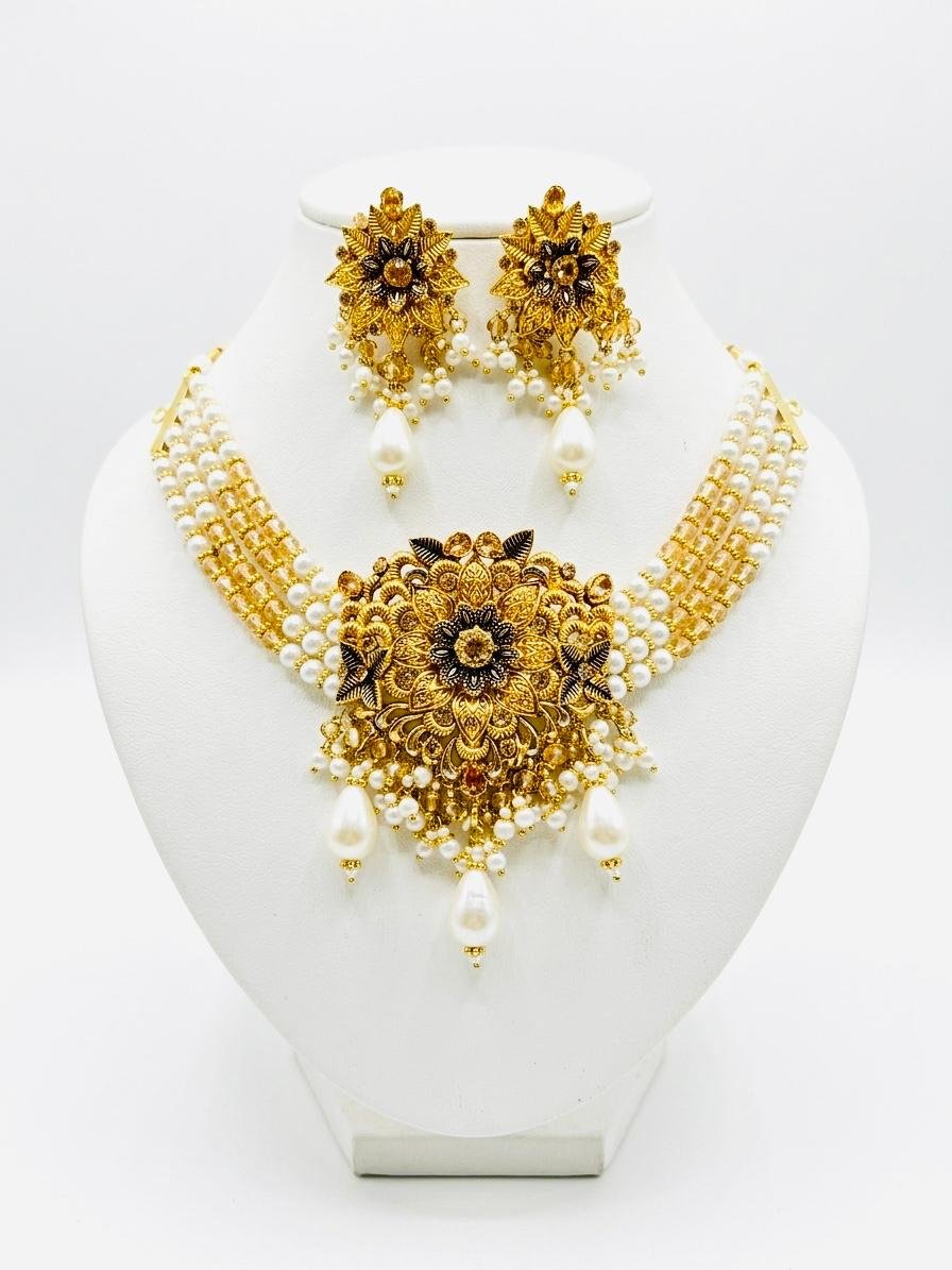Bridal Set Starting From 1.5 lac Exquisite Bridal Gold HALF COLLAR Set featuring elegant design and fine craftsmanship a perfect blend of tradition and luxury for the bride’s special day.