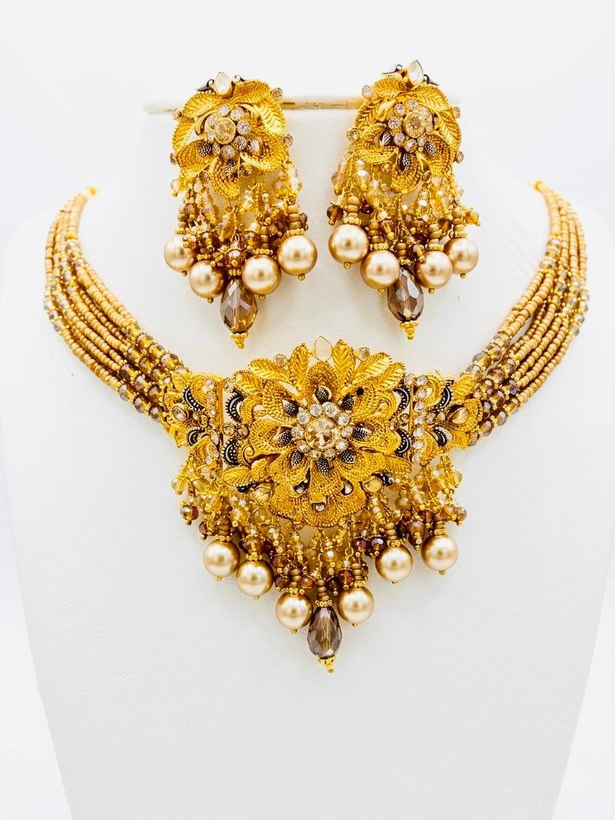 Bridal Set Starting From 1.5 lac Exquisite Bridal Gold HALF COLLAR Set featuring elegant design and fine craftsmanship a perfect blend of tradition and luxury for the bride’s special day.