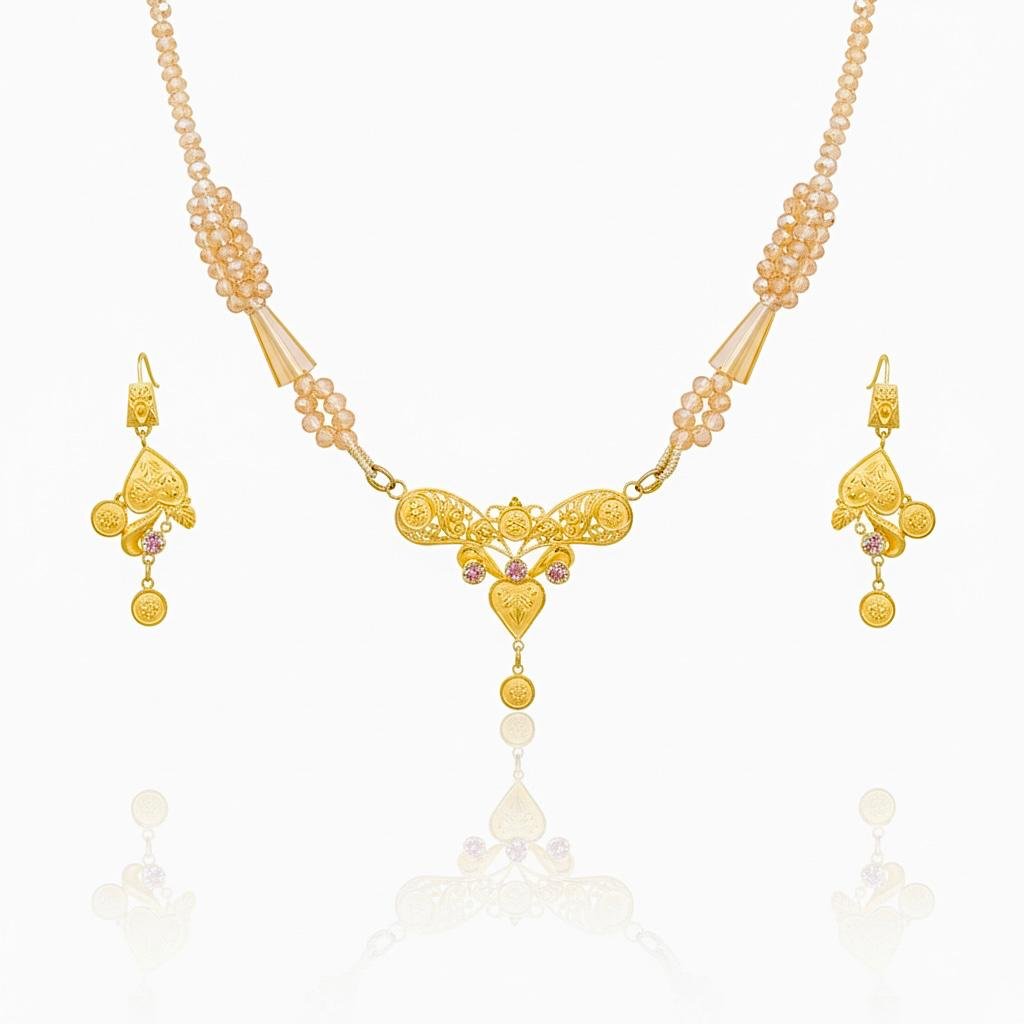 Beautiful Gold Half Set with graceful design and detailed craftsmanship — perfect for adding a touch of elegance to any occasion.