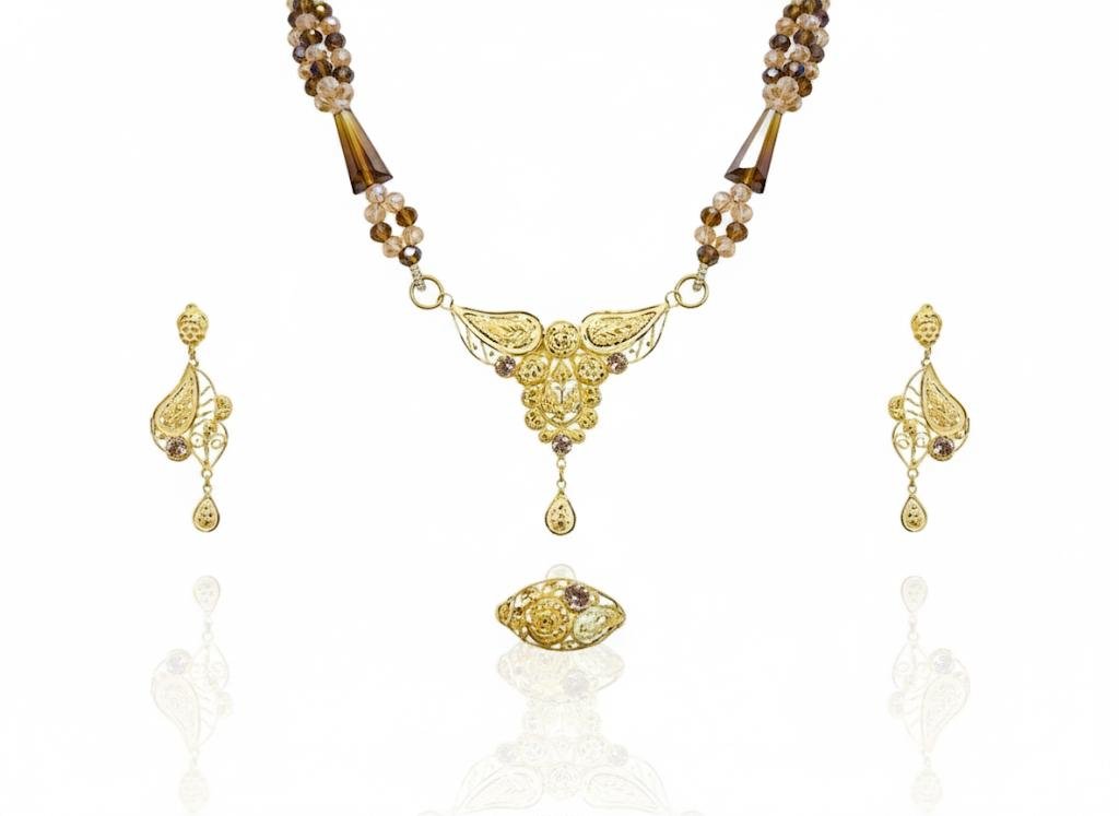 Beautiful Gold Half Set with graceful design and detailed craftsmanship — perfect for adding a touch of elegance to any occasion.